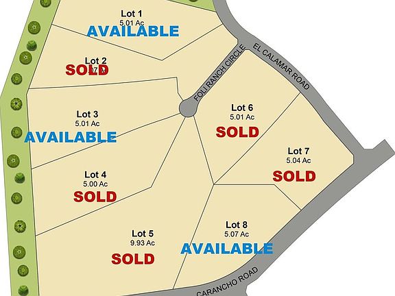 Located just north of the intersection of Carancho and El Calamar Rd, Lot 1 of 8 is a fantastic opportunity to own a piece of the farm and ranch community of De Luz. Surrounded by large custom estates and conveniently situated near Temecula, Murrieta, and Fallbrook, this hidden gem offers a peaceful country lifestyle. The site comes with a 1-inch water meter installed. With stunning views, scenic surroundings, and plenty of space to grow an orchard, raise a small farm, plant a vineyard, or even build a corral for equestrian use, the possibilities are endless. Make Lot 1 your own estate today! Please note that some pictures may depict other lots in Foli Ranch.