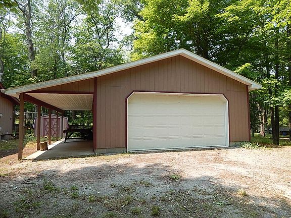 Located in private, gated, Lost Lake Woods Club, with its countless amenities, this cozy three bedroom, one bath home/cabin is ready to welcome a new family. The natural gas wall furnace, and the wood-burning-look gas stove/fireplace heat the whole house. A tasteful tongue and groove living room feature-wall speaks classic decor! The galley style kitchen has an open pass-through to the dining area. With three bedrooms, there is plenty of room for everyone. An incredible, high ceiling 24'x32'drive thru garage can hold all the toys with lots of room to spare. The back of the property features two sheds for even more storage space, and a screened in gazebo that houses a hot tub. All appliances are newer. Most furnishings shall stay. This home/cabin is for weekend or year round use. One Club membership is included, subject to Club approval. Call today!