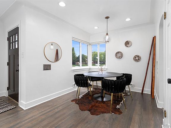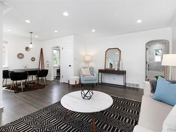 Discover the perfect blend of mid-century charm and modern convenience in this Mid-Century Modern home, ideally situated in the sought-after Berkeley neighborhood. This sun-filled residence boasts stunning architectural details, including coved ceilings, arched doorways, gleaming hardwood floors and recessed lighting. The main level features a spacious living room seamlessly connected to the dining area. The efficiently designed kitchen has maple cabinets, Corian countertops, and stylish laminate wood flooring. The primary bedroom offers a generous walk-in closet with pocket doors leading to a beautifully remodeled bathroom, complete with double sinks and designer finishes. The finished basement adds significant value with its versatile living space, including a bar, kitchenette, and dining area. A bedroom and updated bathroom enhance the functionality of this space, which also has a private entrance making it perfect for rental potential. Step outside to enjoy the large backyard with its two decks and garden boxes, ideal for both relaxing and entertaining! The expansive 6,700-square-foot lot also includes an oversized two-car garage and off-street parking. Located just blocks from Tennyson Street and Lowell Blvd, and easy access to West Highlands, Regis, Sunnyside, and I-70, this home is positioned perfectly for enjoying local restaurants, shops, and more.