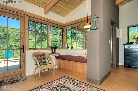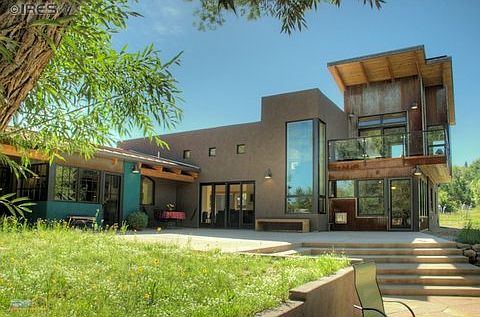 South Boulder Creek home designed by Barrett Studio Architects and completed in February 2013. Spectacular Flatiron views from every room, creek-side flagstone patio, private courtyard, and almost two acres of land adjacent to Open Space. Sustainably built using natural materials, solar panels, and adobe-like thick walls (ICF), earning the home a 5 Star plus rating with a 26 HERS index. Natural landscaping, organic gardening area and a barn for storage or animals. A truly one of a kind property!