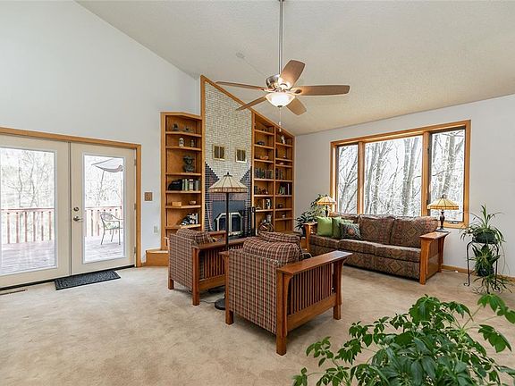 This acreage is a dream come true! Living room features vaulted ceilings and gorgeous tile wood burning fireplace with built-in shelving on either side. Step out onto the large deck and enjoy your morning coffee while watching the sunrise. Kitchen features stainless steel appliances, tons of cabinet space, and a wet bar. Dining area off of kitchen, and separate formal dining room that could also be used as an office! Primary bedroom features access to the deck, and an ensuite bath with large vanity. Lower level boats spacious family room, a wet bar with ample cabinet space, and additional space perfect for storage or a workshop. Buyer to verify schools.