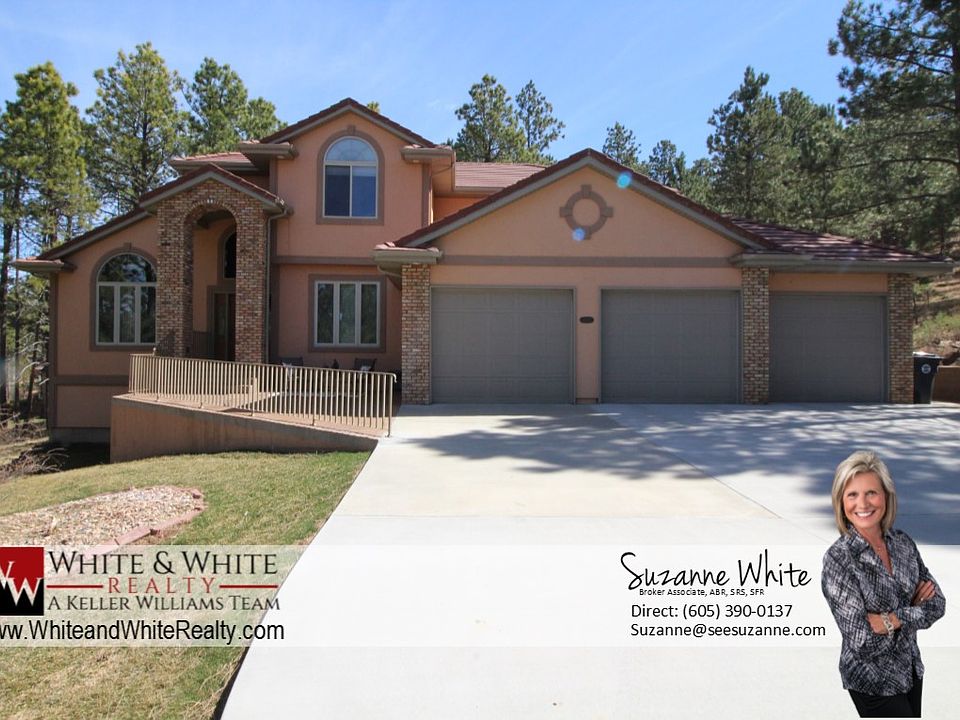 Call Suzanne White at KW Realty (605) 390-0137. Gorgeous 4,500+ sq ft home in Carriage Hills sits on an immaculate 1.2 private wooded acres! The main floor of this beautifully upgraded home features a formal living room open to the formal dining space, an upgraded kitchen complete with hickory cabinets, hard surface counter tops, great storage, stainless steel appliances, breakfast bar and nook that opens to the large back patio. Spacious living room with fireplace and custom built in shelving. Beautiful, open space! Office has oak hardwood floors & french doors. The upper level boasts a large laundry room and 3 large bedrooms including the luxurious master suite with gas fireplace, balcony, walk-in closet and 5-piece master bathroom complete with jetted tub, marble shower & double sink. Lower level features family room with walk-out to yard plus 2 additional bedrooms, a full bathroom and 2 HUGE storage rooms with shelving. eller to give tile and/or hardwood flooring allowance for entrance, kitchen & dining room floors with accepted offer!! Additional details: Mudroom with shelving leads to 3-car garage, carpet replaced 1 year ago on main level and in basement, Hunter Douglas window coverings stay, 3-zone furnace with humidifier (each level individually controlled), 2x6 construction, driveway recently repaved. The exterior is maintenance-free with concrete roof tiles and stamped concrete patio. Sprinkler system in front and back. Buyer & buyer's agent to verify all MLS information & measurements.