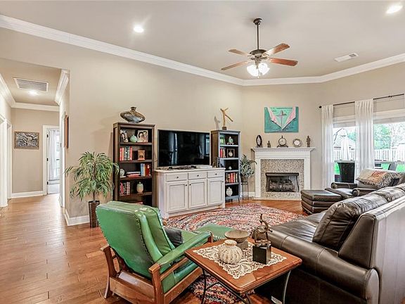 This exquisite home is located approx 10 min. from I-12.Extremely well kept open floor plan w/security system .Lg foyer with 10 ft ceilings in main living area.Granite countertops in kit w/NEW fridge, Full 2 car garage, covered back patio and a oversized fenced in bkyd. Gutters on front and back. Side entry gate and a workshop 14x33 in back that is heated/cooled with attached storage. Possibilities for this extra space are endless! This home is located on a quiet street with no thru traffic. A Must See!!