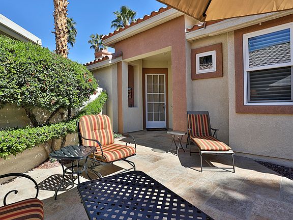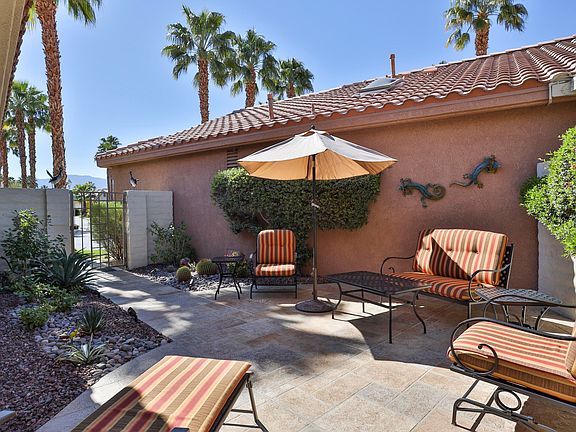 Don't you dare miss this amazing Oasis CC golf course home. Conveniently located in the heart of the club. Walk to the clubhouse for breakfast, lunch and/or dinner. Walk to the first tee for a round of golf. Walk to the tennis/ pickleball courts for a game with friends. You get the point. This home is central to everything great in The Oasis. This is a stand alone condo that sits on an a coveted over sized and elevated lot overlooking the 18th fairway and green. Design features include granite countertops, stainless steel appliances and refaced cabinets. The windows have been replaced with energy efficient LowE by Milgard. Both bath rooms have been updated with tasteful finishing touches. There is an office/3rd bedroom off the guest bedroom. Wonderful outdoor living options include a private courtyard patio with western exposure as well as the golf course patio which faces east. The Oasis Country Club is one of the best kept secrets in Palm Desert. This community owns the golf course and clubhouse. It is well maintained, well funded and self managed. Some of the amenities include fine and causal dining at the clubhouse, 18 hole golf course, 18 hole putting course, 3 tennis and pickle ball courts, 18 pools and spas and is 24 hr. guard gated. Last but not least you will find the friendliest members here. Come see for yourself why this club is so special. The Oasis CC is centrally located and close to world class dining, entertainment and recreation.