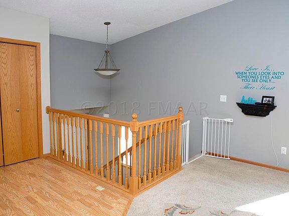 GREAT SOUTH FARGO LOCATION! OPEN FLOOR PLAN Built by Dakota Construction w/1968 Sq Ft. in 2002. BRAND NEW CARPET THIS WEEK! Offering 3 bedrooms, 2 full baths, 2 Stall garage & fenced! Upper level: Living Room w/patio door to deck & fenced yard, Kitchen w/Island & pantry, Large Master bedroom w/walk in closet, Hollywood bath, Lower Level: Nice sized family room, 2 nice sized bedrooms, full bath, laundry and storage area (upgrade). Nice landscaping! Finished garage. Custom painting. very low specials! Includes all Kitchen appliances, all blinds, work bench, cubby unit in garage, Master head board. ..NOT in Floodplain. Quick Possession OK!