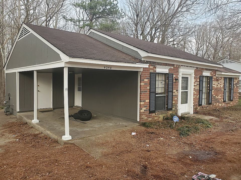 OWNER FINANCE OPTION on a Lease with Option to Purchase Contract! $6000 down and $ 1075 per month to buy ! Easy qualifying! This brick 3 bedroom, 1 - 1/2 bath home has been recently renovated throughout. The house features central heating and air conditioning, a carport, a large fenced back yard with a greenway behind the property, so NO NEIGHBORS behind your home ! It also features a recently tiled kitchen and laundry room, lam wood flooring throughout. The entire house has been painted inside and outside and has a Brand new 30 year Architectural Roof. LEASE PURCHASE OWNER FINANCE AVAILABLE !! Less than RENT The home is located in a quiet stable neighborhood near the intersection of Yale Rd. and Raleigh Millington.