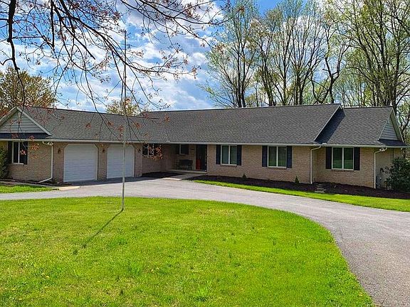 SELLERS VERY MOTIVATED! Main house is a spacious almost 6,000 sq. ft all brick rancher ( including unfinished basement) with an open floor plan. French doors with peaceful views from every angle. Solid wood doors & all trim stain natural, with hard wood flooring & Anderson windows. Concrete covered Patio (24x40) off Kitchen. Solar Panels are owned by current owner. Great "multi-use" room off the Kitchen. Wood boiler system was installed in 2006. Property currently has 2 ranchers ( 1 tax records shows built in 2000). The other almost 1500 sq. ft rancher modular) was built in 2015- 3 bed/2 bath w garage, deck & porch added. County allowed the owners to share a well, but required separate septic systems ( 1 is a BAT). Updated plat available.