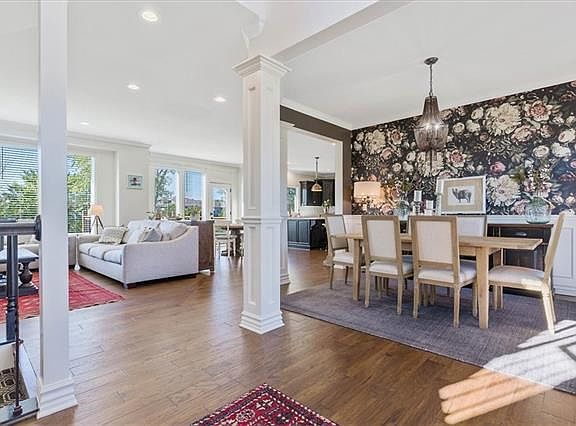 Welcome to this stunning updated home in Lee's Summit! Complete with designer details everywhere you look, this incredible home offers an open concept with hardwood floors throughout. The formal dining room sits off of the entryway and features designer wallpaper, a gorgeous updated light fixture, and views of the lush curb appeal. Relax in the living room with a fireplace, built-ins, and floor-to-ceiling windows that let in an abundance of natural light. The kitchen is truly a chef's delight with a gas range, double ovens, an oversized island with a built-in microwave, a beverage fridge, and a butler's pantry/workspace just off the garage. Quartz countertops, copper fixtures and hardware decorate this kitchen, giving it tons of style and charm. The massive walk-in pantry has a coffee bar and space for a second refrigerator. Enjoy the breakfast dining area that walks out to the large deck overlooking the expansive backyard that backs to trees. Upstairs, the primary suite is the perfect hideaway with a private sitting room with a cozy fireplace and views of the beautiful property. The ensuite bathroom has separate vanities, a soaker bathtub, a walk-in shower, and spacious dual closets. You will enjoy the convenience of having a bedroom-level modern laundry room with ample storage space. The secondary bathrooms, along with the primary suite, feature granite countertops. On the main level, there is a fifth bedroom and full bath that also works great as a home office. Don't miss the unfinished lower level awaiting your finishing touches, and the three-car garage with epoxy floors and plenty of storage space. Your family and friends will enjoy the neighborhood amenities with swimming pools and a playground, and being just a few houses down from the school bus stop. Don't miss out on this beautiful gem!