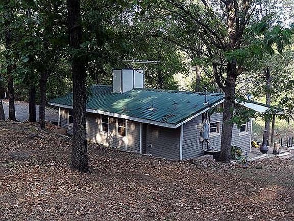 Secluded Ft. Gibson Lake Resort Property, One of 4 properties sharing 15-18 ac. HOA compound very private, W 2 slip boat house/dock on quiet cove at Pistol Point. Totally updated home with high finishes, 2/1 w 3 car in 30x50 shop. One boat lift.