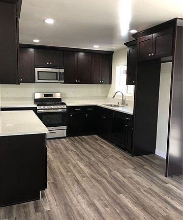 This corner home is situated on a lovely tree lined street. The entire home has just been remodeled with new dual pane windows, paint, flooring, and the spacious kitchen has new cabinets and quartz counter tops with newer appliances and the bathrooms have both been remodeled from top to bottom! The living room with a fireplace has been opened up for a nice spacious floor plan. The backyard has several fruit trees...perfect for entertaining and the property is also close to the #91 and #5 freeways as well as the Metrolink station.