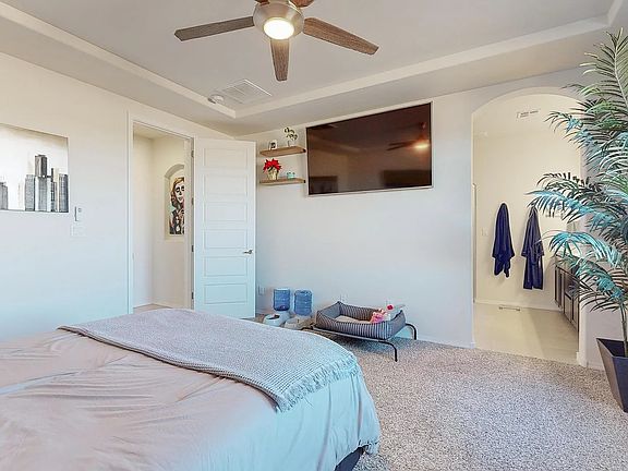 Property must be viewed in person prior to applying. Employment verification and paycheck stubs will be required to verify income. Please contact to schedule a showing and include your phone number and email address.* New build, contemporary, Northern New Mexico architectural style home located in the Mountain Hawk area. This beautiful retreat offers modern comfort with a thoughtfully designed interior, open concept design, plenty of natural light, and an ample kitchen with stainless steel appliances, washer and dryer included, Samsung Bespoke Smart refrigerator, brilliant Quartz countertops, and modern-style backsplash. Take in the serene outdoors in the spacious backyard and covered patio. Features tile floors throughout, refrigerated central air, large walk in master shower and closet, Google Video doorbell, Google Nest Smart thermostat, forced air heat, and an attached two-car garage with solar panels. NO MONTHLY HIGH PNM BILL, rent includes solar panel energy. Conveniently located only minutes from NM550 Highway, Bosque Brewing, The Block, open trails, shopping, entertainment, and more. HOA managed. The deposit is equal to one month's rent. 12-month lease term preferred. Pets are considered with a $250.00 non-refundable pet fee per pet. Home includes a convenient double lined doggy-door to backyard! Smoking of any kind is not allowed. Home can come fully furnished as well for additional cost. Beds, TVs, couch, dining table, furniture etc. Details Beds/Baths: 3BD/2.0BA Square Feet: 1,750 Rental Terms Rent: $2,600.00 Available: Now Security Deposit: $2,600.00 Pet Policy Cats allowed Dogs allowed: Doggy door built into master bedroom/backyard patio Owner pays own utilities. Gas, water, trash, internet, etc. Home includes solar energy (Owner puts PNM under name and pays small fee every month, unless consumes over energy solar panels produce and tenant pays energy cost difference).