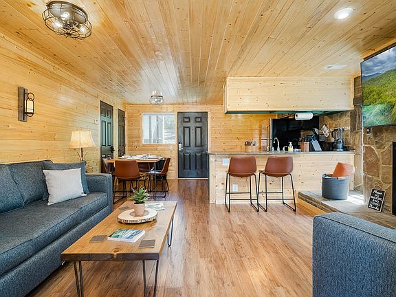 Dolly's Castle, Unit 8 is a one bedroom, one bath apartment. The living room is an open floor plan with a generous living space and cozy fireplace, and is open to the kitchen with its own breakfast bar and lots of counter space. The unit is equipped with a washer and dryer connection. Enjoy beautiful mountain views from your private balcony, along with the benefits of private parking and on-site security. Conveniently located, this property is just 15 minutes from Gatlinburg and 12 minutes from Dollywood, making it a great spot for both work and play. Please note that photos shown are not the Unit photos itself but it is similar. Dolly's Castle is an 8-unit apartment complex with short-term and long-term tenants. Enjoy the mountain views from the private balcony, offering a peaceful and restorative experience, while also being close to all the excitement in Gatlinburg and Pigeon Forge!