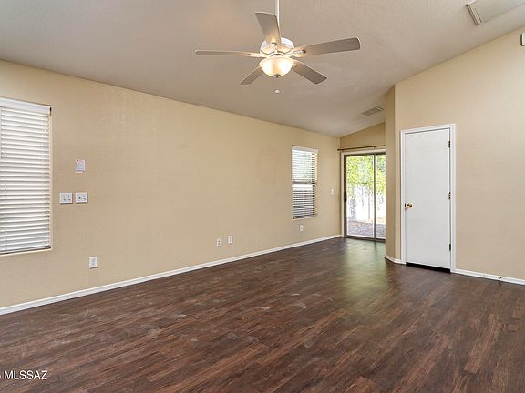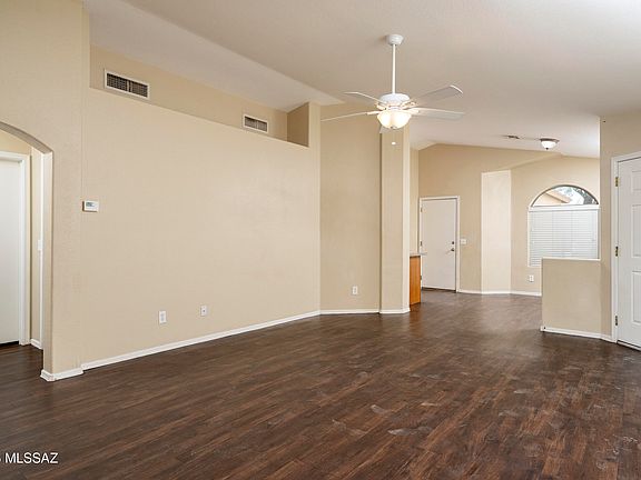 Corporate owned--offers responded to within 72 hours, Monday-Friday only, thank you! This 1284 square foot, 3 bedroom, 2 bath home is ready for new owners! No carpet--just easy-care wood-look vinyl throughout. The open living space has a vaulted ceiling with a plant shelf and ceiling fan. The sunny, generously sized kitchen offers a pantry closet, plenty of counterspace, all appliances and a large dining area with arched windows. Laundry hookups are conveniently housed in an adjacent closet in the kitchen. Overlooking the backyard, the private primary bedroom also has vaulted ceilings, plant shelf and ceiling fan. This bedroom also has an attached full bath and a walk-in closet. Two more bedrooms are serviced by a full hall bath. This home also has a two-car garage. The north-facing backyar d is fully graveled and ready for your plantings and there is a beautiful mature shade tree in the front yard. Your new home has easy access to the I-10 and the Tucson International Airport.
