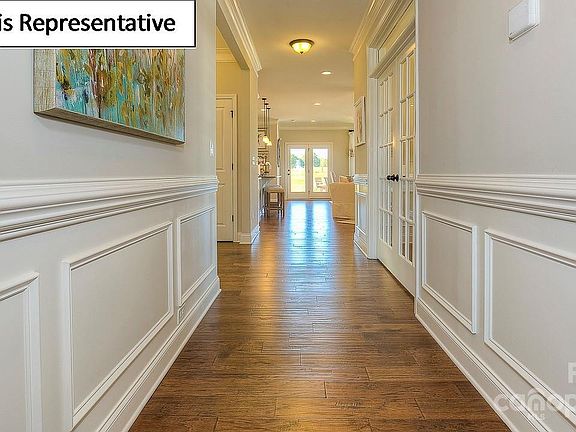 This open floor ranch plan includes granite counter tops and backsplash with Stainless appliances in the kitchen with an island/breakfast counter. Stone mantel on the fireplace in the Living room. French doors in into the flex space with a closet could be used as a third bedroom. Extensive moldings throughout the home in select areas. Revwood flooring in select areas including the flex room. Extra widows in living area to add more natural light.