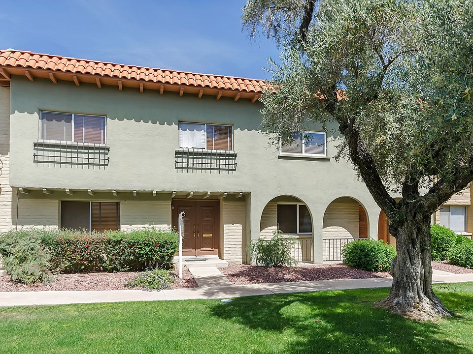This is your opportunity to own this updated 3 bedroom, 2.5 bath Townhouse in one of the most Desirable areas of SCOTTSDALE! Brand New CARPET, New PAINT throughout! Beautiful Corian Counter tops in Kitchen with Breakfast Bar seating that opens to the Dinning Room and large outdoor Private Patio space! Large Living Room with Office/Den area along with Powder Room. Upstairs has 2 very nice size Rooms and Full Bath with Jacuzzi Tub! Then walk into your Large Master Bedroom with Bathroom and a nice size Walk In Closet! 2 Carport spaces behind unit, Large Storage Shed! HOA Fee covers Water, Sewer & Trash, Roof repair/replacement & Complex Amenities. Community Pool and Spa, Children's Playground, Clubhouse and Lots of Walking Paths!