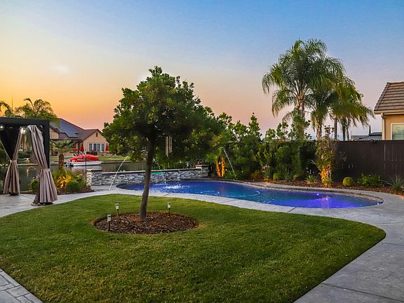 Welcome to your dream home in Clovis, beautifully situated on a corner lot in a picturesque gated community, boasting breathtaking lake views and a wealth of amenities. The exterior features charming brickwork and lush landscaping that greets you as you arrive. This exquisite property features spacious living areas filled with natural light, creating a warm and inviting atmosphere. Enjoy two dining rooms perfect for family meals and entertaining guests, along with a gourmet kitchen showcasing sleek cabinetry, high-end stainless steel appliances, and a large island ideal for meal prep and casual dining. With 4 spacious bedrooms and 4.5 bathrooms, including a serene master suite with an en-suite bathroom, this home offers a private retreat for everyone. Ample storage throughout and a generous 3-car garage make it perfect for families needing extra space. Step outside to a beautifully landscaped backyard, complete with a sparkling pool and plenty of room for outdoor gatherings, all overlooking the serene lake. Located within walking distance to a highly-rated school, this community enhances your lifestyle with numerous amenities and events, making it perfect for families. Don't miss your chance to make this extraordinary lakefront home yours, schedule a showing today!