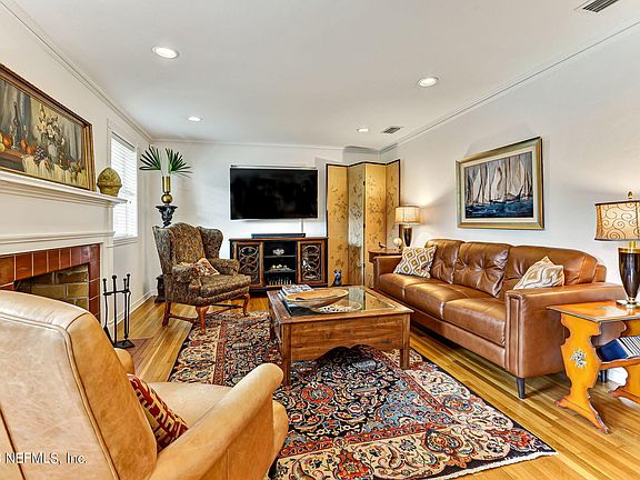 Lovely 4 bedroom pool home in sought-after Ortega Forest! Homes like this are a rare find these days! Tucked away on a quiet street, this fine home offers formal living & dining rooms, updated kitchen, cozy den, split floor plan with 3 bedrooms and hall bath on one side and a private primary suite on the other! Additional features include interior laundry room, private spacious deck - perfect for entertaining - that overlooks lush back yard & pool, 2 car garage and ''A rated'' Stockton Elementary School is just a quick golf cart or bike ride away!