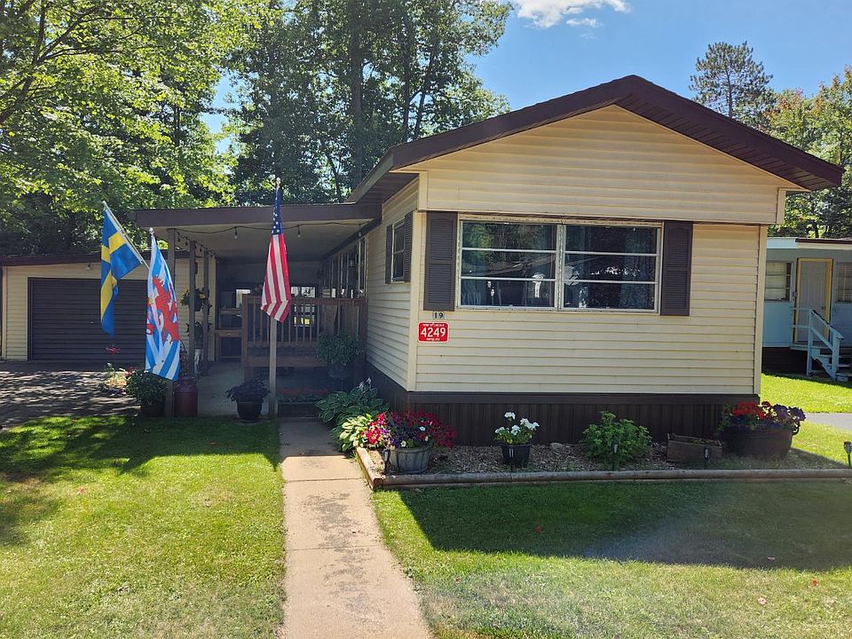 Charming, well maintained, renovated two bedroom, one and a half bath mobile home. This mobile home features central air conditioning as well as a newly renovated kitchen, including new cabinets, countertops and sink. The new deck and blacktop driveway add value to this little gem. There is an attached one stall garage with plenty of storage. This home is located close to the chain of lakes and on ATV and snowmobile trails. $400 lot fee covers water, sewer, garbage and snow removal.