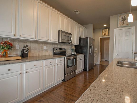Here we have the very popular Manhattan floor plan with tons of upgrades! When you walk in you feel the openness and light. Gorgeous laminate flooring and tall ceilings throughout the living areas. The kitchen features QUARTZ countertops, stainless steel appliances, tile backsplash, and a butlers pantry. The master bedroom is large with a generous walkin closet and en suite bath featuring a double vanity, whirlpool tub, and tile shower with glass surround. The garage was extended so you can fit longer vehicles or park and still have room for shelving. The attic above the garage has been floored for storage. Outside you will find a privacy fenced yard and extra large patio. Why wait to build when this home has the upgrades you want and is ready to move in!