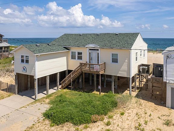 This is your great investment with a stable dune. 4 bedroom, 2 bath. Immaculate Kitty Hawk oceanfront with breathtaking views! Meticulously maintained! Everything has been updated and replaced with the finest materials. Ideally located at mile post 3 in Kitty Hawk. It is convenient for owners and out of town guests. Through the front door you are welcomed in a spacious foyer, where your eyes go straight to the picture window that showcases views of the ocean. There are four bedrooms and two bathrooms all full of natural light. The kitchen has been completely remodeled and includes solid wood cabinetry, stainless steel appliances, LVT flooring and granite countertops. The interior features tongue and groove wood paneled ceilings and walls providing a coastal feel, solid wood doors, fans and light fixtures, bathroom vanities, comfort height toilets, bathroom flooring and furnishings. Exterior features include 8x8 pilings, oceanfront and entry decks, ground level deck providing shade after a day at the beach, outdoor shower, lighted picnic table area. Coastal soft underpinning that never needs to be painted. Recessed lighting, easy to maintain vinyl siding, and paved parking for four cars. Exterior HVAC unit new June 2023. Well established income. The perfect opportunity for a vacation home investment. Come and see it for yourself.