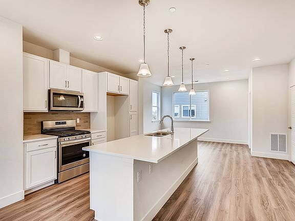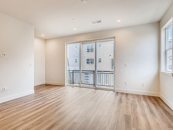 The Oasis plan is perfect for those who love to entertain! The open floor plan on the Living Level includes a large kitchen with a large enviable granite eat-in island with an undermount sink and four pendant lights. The kitchen also features gorgeous stainless appliances, 5" plank LVP wood flooring, and a built-in pantry. Upstairs, the master and secondary bedrooms each have their own private bath with granite countertops, undermount sinks, elongated toilets and tile floors. The master bedroom has a large walk-in closet, dual sinks and clear glass shower. The convenient laundry room and linen closet on the upper floor makes chores a breeze! Two outdoor living areas include a second story balcony and the DoMore space. The DoMore space is a flexible 'lifestyle' space located on the lower entry level where you can design your home gym, bike, board & ski shop, home office, or bring your patio lounge space inside. The roll-up garage style door provides a great way to merge the indoor and outdoor experience into one - simply roll up the modern garage door to bring the outdoors in! The Oasis plan is always an end unit with plenty of large windows to let the light in. Additional plan features include air conditioning, tankless water heater, active radon system and an oversized two-car attached garage with WIFI garage door opener. This solar-powered rowhome is LEED Gold Certified, Zero Energy Ready and Indoor airPLUS Qualified, meaning it was built from the ground up with your he
