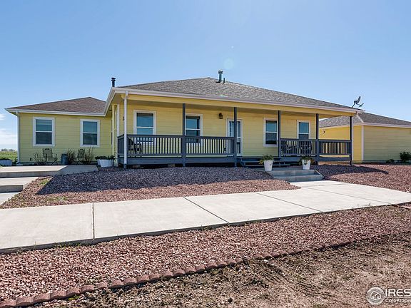 Amazing three bedroom ranch home on a sprawling 8.5 acre lot in Ault! The property is ready for horses and is complete with a loafing shed, pasture, corral and hay storage building. The home has seen many updates including fresh paint inside and out, newer Pella windows, new carpet, new granite countertops and tile showers in both bathrooms. Enjoy beautiful views snow capped mountains and plains from the expansive covered porch. A bright living room welcomes you into the open and spacious home. The eat-in kitchen boasts granite counters, tile backsplash, a breakfast bar, huge pantry and separate dining area. The roomy master suite offers a walk-in closet and private bath. Relax on the large patio that is wired for a hot tub or entertain on the flagstone patio by the fire pit. Additionally, the property features a detached two car garage a large drip plasti-culture garden, fruit trees, deciduous trees, pine trees and the septic has recently been emptied. Come see this wonderful property today!