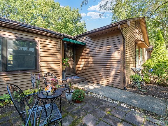 One-level condo in the heart of town yet tucked away. You will be delighted to find this 8-unit development with woods along the back for privacy. Kitchen with updated appliances, tile floor, and pantry. Great Room is open to the DR. Great Room features wood burning FP and a large glass door along with/ skylights to enjoy the natural light. Primary suite on the backside with access to full bath. Bedroom II is located on the front of the home. Gas Heat & A/C 2017. Updated. laminate flooring in the GR and DR. Spacious deck on the back. HOA fees $175/month. Convenient to everything!