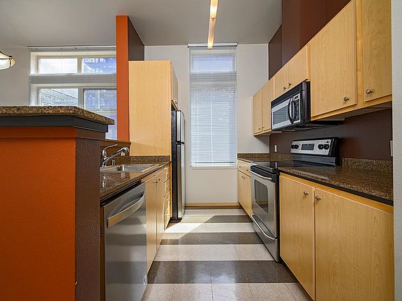 This contemporary & spacious 937 SF 2 Bedroom/1.75 Bath corner unit features large windows and lots of natural light. Centrally located close to transportation, easy access to downtown, freeways, hospitals, grocery store, restaurants, Starbucks, and other conveniences. Living/dining areas with open floor plan. Modern kitchen features granite counter tops, stainless appliances, eating bar, and hardwood cabinets. Master bedroom features private full bath with tile flooring and walk-in closet. Additional second bedroom and three quarter bath. New paint. Carpets throughout. Washer/dryer in unit. Secure building with regular surveillance. Two assigned parking spaces in secure garage included in rent. Fitness room, patio with BBQ for relaxing and entertaining. Electric heat/low energy costs. Move-In Terms: 1st & 1 month security deposit (- non-refundable fees). Available: August1 or possibly a few days sooner. 1-year lease minimum, 2-year lease preferred Non-refundable move-in fee to HOA $230.00. Parking: 2 assigned parking spaces included in rent. Utilities: garbage included in rent, tenant pays all other utilities. NO SMOKING PLEASE/NO PETS PLEASE. Screening Fee is $46.00 per adult applicant. Link to our on-line application and qualification requirements: Listed by CHEL NW Realty LLC.