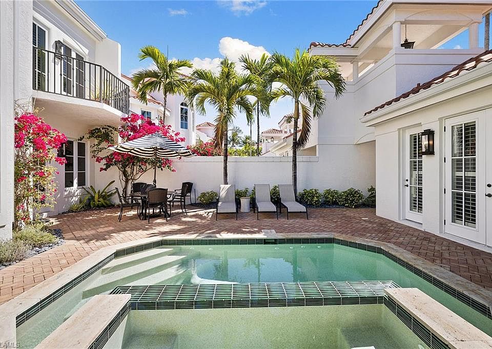 Treat yourself to a beautifully updated two-story villa in the heart of Old Naples. This bright end-unit residence offers four bedrooms, including a private cabana, and a sun-drenched heated pool with southern and western exposure. Thoughtfully updated with a new roof (2021), impact-rated windows and doors (2022), and a new pool and spa, deck and equipment (2023). The bright, open floor plan features an updated kitchen with quartzite countertops, stainless appliances and seamless indoor-outdoor living. The spacious primary suite boasts vaulted ceilings, and a private balcony overlooking the pool. The detached cabana suite is ideal for guests, a home office or poolside bar. Enjoy peace of mind with a higher elevation, according to the owner, protected from recent storm surges including no flooding during Hurricane Ian, according to the owner. A two-car attached garage with alley access completes the home. Ideally just steps from Old Naples white-sand beaches, world-class dining, shopping and theaters. A rare pet-friendly find in a prime location offered furnished and move-in ready.