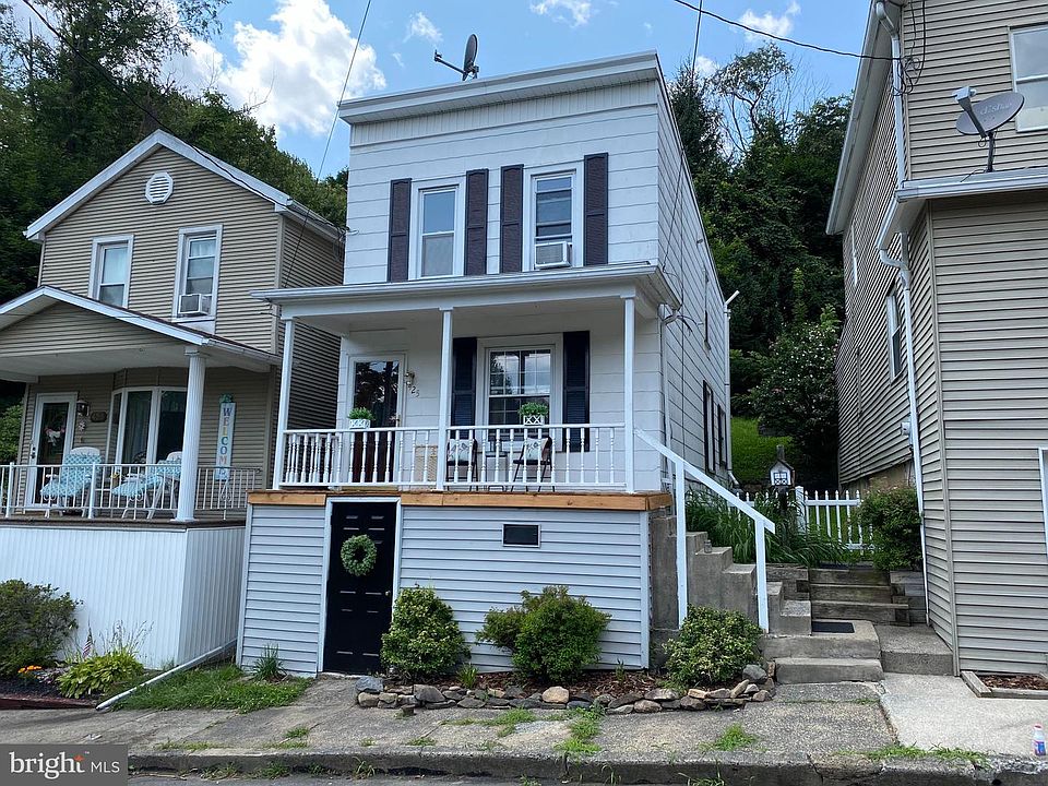Port Carbon. 3 bedroom, 1 bath detached 2 story single. Fenced rear yard, covered front and rear porches. Replacement windows throughout. New front porch roof. Outside entrance to basement. Open living room and dining area. Oak kitchen, appliances remain. 3 bedrooms and a full bath on the second floor. Ample closet and storage space. Economic coal heat. Pottsville schools.