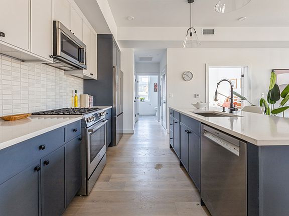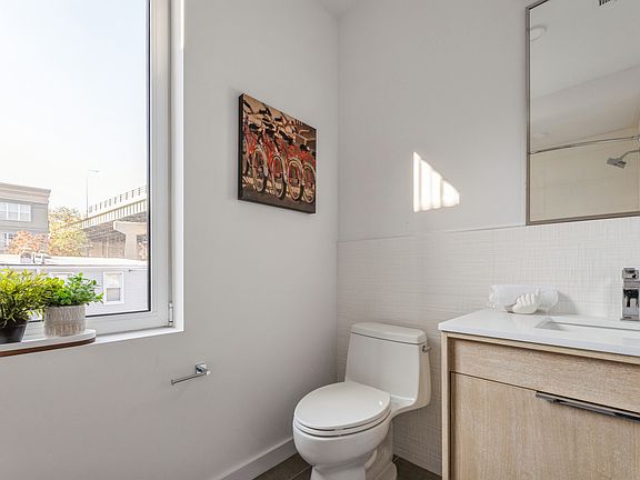 Welcome to Village 425, an impressive 48 new condominium building offering more amenity space than any other boutique building in Jersey City's historic downtown district and located directly across from Mary Benson Park. Residents can enjoy a wealth of amenities, including an expansive lounge with indoor-outdoor seating, a TV and kitchen. Outside, the large patio and grills are perfect for barbecues and game days. A private phone room, game room and fitness center make living easy. Village 425's distinctive homes features sleek modern finishes, open-concept layouts, and oversized windows framing great natural light. Unit 202 offers two bedrooms plus den, with a door leading to patio and closet, which acts just like a third bedroom. Large living rooms invite you to relax and entertain, while the open chef's kitchens pair quartz countertops with custom cabinetry and a full complement of stainless steel Bosch appliances. Select units offer dens and private outdoor space, perfect for working from home or al fresco dining. Bedroom feature generous closet space, and the bathrooms are finished with luxury tile, sophisticated vanity cabinets, and high-end Kohler and Delta fixtures. This pet-friendly elevator building also features a key fob/video intercom entry, video security and convenient indoor bike racks. Nestled in the western part of Historic Downtown Jersey City, The Village was originally known as the Italian Village and considered the area's Little Italy. Today, the neighborhood offers a wonderful cross-section of old and new shopping and dining venues, plus easy access to Harsimus Cove and Hamilton Park amenities. Proximity to the Grove Street PATH Station, buses and Citi Bikes makes getting around effortless.