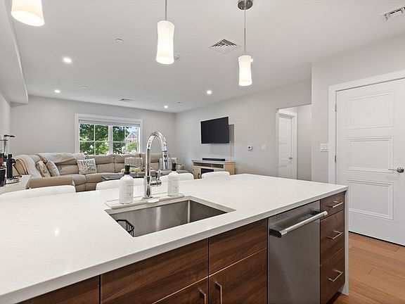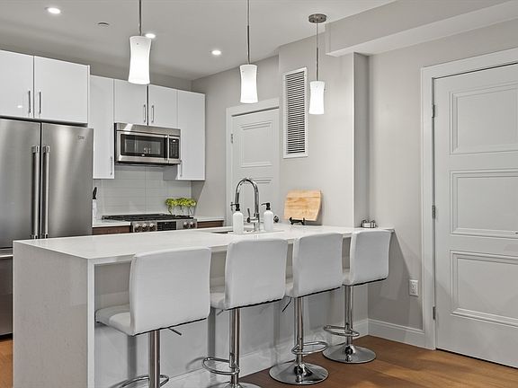 CONTEMPORARY TWO BED TWO BATH WITH GARAGE PARKING IN LUXURY BUILDING AND HIGHLY COVETED LOCATION! "THE ARMSTRONG" IS A 2023 “SMART” BUILD THAT BOASTS HIGH END FINISHES THROUGHOUT STARTING WITH THE LOBBY. RESIDENCE 207 OFFERS A THOUGHTFULLY DESIGNED OPEN FLOOR PLAN. THE UNIT GREETS YOU WITH A DESIGNER EAT-IN KITCHEN COMPLETE WITH A WATERFALL EDGE BREAKFAST BAR, TWO TONE CRAFT CABINETRY, BEKO APPLIANCES AND DESIGNATED AREA FOR DINING. THE DINING AREA OPENS INTO A SPACIOUS LIVING ROOM INTENTIONALLY PLACED IN THE CENTER OF THE UNIT, MAKING IT THE PERFECT LAYOUT FOR ENTERTAINING. KING SIZED PRIMARY INCLUDES LARGE CLOSET AND DUAL VANITY BATHROOM WITH GLASS SHOWER. POLISHED GUEST BATHROOM WITH STONE BATH. ADDITIONAL FEATURES CONSIST OF A QUEEN SIZED GUEST BEDROOM, IN UNIT LAUNDRY, HARDWOOD FLOORS, CENTRAL AIR AND EXCELLENT STORAGE. IMPECCABLE COMMON AREAS INCLUDE OWNER’S LOUNGE, FITNESS CENTER, LARGE PATIO AND HEATED GARAGE. CONVENIENTLY LOCATED JUST 300 FEET FROM THE COMMUTER RAIL.