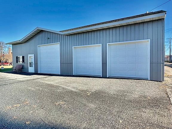 A garage, a real beauty! This in town property, consisting of 5 city lots with a large open lawn area, parking, and a 24 X 52 foot completely redone garage is now available for your entrepreneurial dreams, storage, or personal work! Currently zoned residential, but check with the city for Commercial Zoning. There had been a smaller, older garage (unknown year) on the premises, but the current seller took it all to new heights in 2019. Having a contractor add on an addition, that boasts a great working space! Steel siding, architectural shingles! There is a wall hanging electric heat unit in the new addition, no heat in the old section. Currently not hooked up to water, sewer, or natural gas, but these utilities are available. The new addition boasts ample outlets both USB and electrical. Wired for a welder. 2 eight foot overhead doors and 1 ten foot. Shelving, pegboard, drafting table, cupboards, this is one beautiful property!