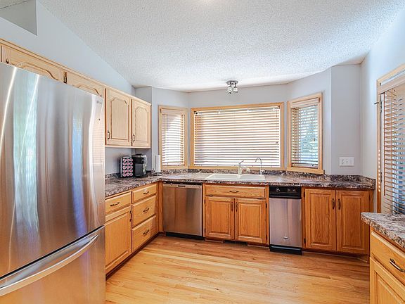 Nice, clean ORIGINAL OWNER RAMBLER that has been lovingly cared-for and sits on a walkout lot that backs to mature trees. The main floor has been freshly-painted and features a wondrously-spacious kitchen that is the heart of this home, with vaulted ceilings, hardwood floors, stainless appliances, bay windows above the sink AND in the large dining space, and access to one of TWO decks! A flex room just off the kitchen leads to a vaulted 4-season porch where you’re sure to spend most of your indoor time! The second deck lies off the 4-season porch. 2BRs and 2 FULL baths are also on the main level, including a vaulted primary suite with TWO walk-in closets and a large dual-sink vanity. The lower level includes a cozy family room with a gas stove, a bedroom and a 3/4 bath. A huge main floor laundry room, in-ground irrigation, updated roof & gutters, and a new SOUTH-FACING concrete driveway are additional amenities!