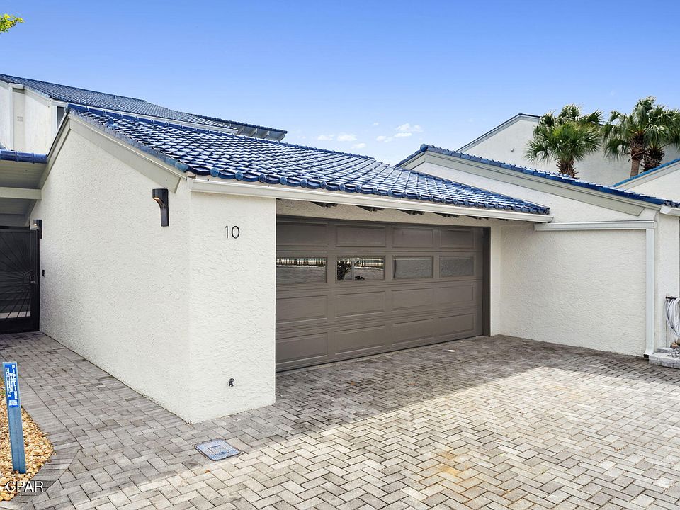 Pricing REDUCTION! BRING ALL OFFERS Stunning Views of bay! Deep water boat slip with 10k lb boat lift in a protected inlet. Flood insurance under $800/yr assumable! 2022 custom renovations on this 3 bedroom town home. Enjoy breathtaking sunrises and moon rises over St Andrews Bay. This unit boasts of floor to ceiling windows, oversized garage 23x21, open living concept with cathedral ceilings, master suite with private deck. Enjoy 2 massive decks for entertaining overlooking the bay. There is also a private courtyard in the center of the home. Kitchen and bathroom have all been updated with custom tile work and stone. The community is a hidden gem in PCB with old live oak trees laced with Spanish moss. It is truly a beautiful property. Water and sewer is included in HOA fees. Motivated seller!