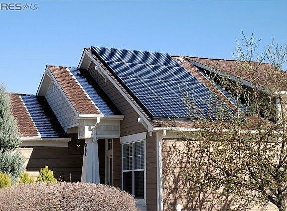 Beautiful rare ranch style home in Indian Peaks has no electricity bill. Solar PV takes care of everything. Comfortable, light, expansive feeling in this 3BR home with finished lower level. Maple cabinets, granite counters, some wood floors, other energy saving features and upgrades too numerous to mention. Great Room, Master and 2nd bedroom on the main level, with 3rd bedroom, bath and family room on lower level. One of the largest lots in the area.