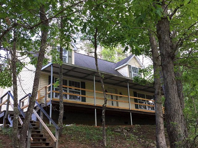 3 bedroom 2 bath home with lots of possibilities. Home has good bones and sits at the end of road and has a large garage/workshop. Master on main level with bath and laundry close by. Eat-in Kitchen with space for large dining room table or sitting area with gas hook-up. 2 bedrooms with bath on upper level. Home also has a large finished room with vaulted ceiling and wood finishes for additional living space. Enjoy the mountain view from covered front porch Must see at this price.