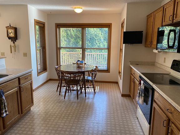 Three bedroom, three bath ranch home in cul-de-sac. New in 2020, roof, gutters and downspouts, garage door and siding on three sides. Eat in kitchen with additional dining room area. Split bedroom floor plan. Master suite has dual closets and one is walk-in. Main floor laundry with two closets for storage. Large lower level has finished full bath. Double walkout door in lower level. Hot tub on large composite back deck stays.