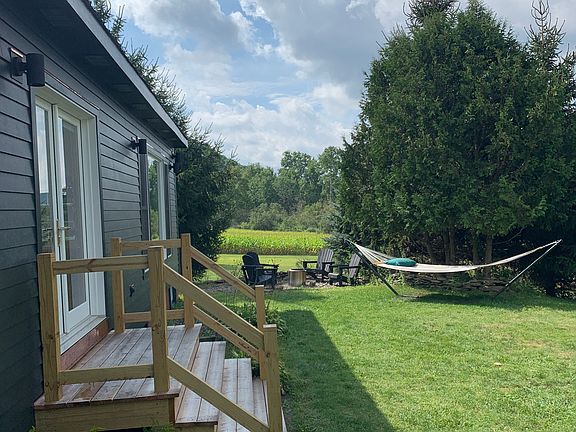 Renovated furnished 3BR, 2 Bath house with a porch and circular driveway in Fly Creek on a quit road 7 miles from Cooperstown and Bassett Medical Center. Open living space with kitchen, 3 BR and bath on the main level. Finished modern basement with laundry, exercice area, playroom and multi media room. The 3 acres property has a pond and all modern amenities including high speed fiber optic internet, TV and grill. Fully furnished, pet-free, no smoking permitted. Short-term lease only. Rent includes utilities, internet, plowing and mowing. Fully furnished, no pets allowed, no smoking.