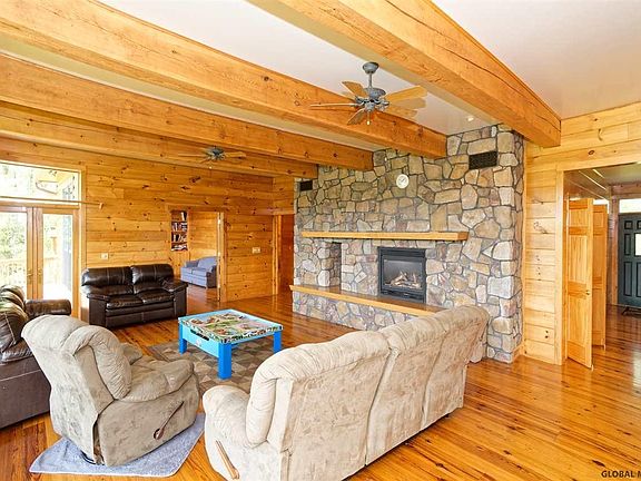 Spectacular views from every angle of this magnificent home. This spacious home offers 2 flrs of living space. Both levels have gorgeous decks to relax & enjoy. Handicap capability. Living rm has soaring ceilings, amazing stone FP w/heat, formal dining rm w/FP, beautiful office space or library w/custom built-in bookshelves. Each rm is sun-filled. Woodwork is quality craftsmanship. Lower level is great for entertaining (complete w/wetbar) or in-law (sep entrance/walk-out lower level) 2 complete kitchens both levels. Spacious bdrms, master has a remarkable full master bath w/walk-in closet & jacuzzi bath. Plenty of gardens adorn this remarkable estate. HUGE pond stocked w/HUGE fish. Efficient GEOThermal htg/cooling/ht water. 300' 10+ GPM well.