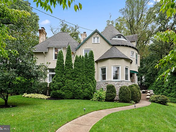 Wonderful combination of historic charm and modern amenities! Located on a quiet tree-lined street in sought-after, walk-to-Wayne, this 6+ Bedroom, 4/1 Bath, Arts and Crafts-style home has been extensively renovated to incorporate features that today’s buyers crave. "Bon Air" is located on the highest elevation in North Wayne, and features a large gourmet kitchen, luxurious primary bathroom, and attached, oversized 2-car garage with indoor access and bonus living space above. Intricate hand-carved wooden griffins frame the entrance to the Living Room, which has a stone fireplace with carved wood mantel, natural wood wainscoting, and tall ceiling height. A cozy alcove and a second fireplace are found in the Music/Sitting Room. Nearby, the gracious Dining Room can accommodate the largest of dinner parties. On the opposite side of the Entrance Hall, you’ll love relaxing in the Family Room, with coveted open flow to the Kitchen and Breakfast Room. Chefs will love preparing meals in the expansive Kitchen, which has a vaulted ceiling, Shaw farmhouse sink, and a generous island with a prep sink and barstool seating. Extensive floor-to-ceiling custom cabinetry provides abundant storage. Appliances include a very large built-in refrigerator, 6-burner gas cooktop, microwave, Bosch double wall ovens, and TWO Bosch dishwashers. Large windows flood the Kitchen and Breakfast Room with natural light, A separate bar area features glass display cabinets, sink, and a wine frig. Several doors lead to the rear deck, which has multiple seating areas for relaxing outside in warm weather months. This level also features a Powder Room, Laundry Room, and several closets. Drop all your gear in the large Mudroom, with soaring 2-story ceilings and large built-in cubbies, plus direct access to the driveway and Garage. Ascend the rear staircase to the large Rec Room with ample space for TV watching and billiards, plus a Bedroom and a 4th full Bathroom (ideal for guests, in-laws, fitness equipment, or a secluded Office.) A soaring 3-story staircase has intricate millwork and a window bench. Nestled to one side is the Primary Bedroom, with 3 capacious walk-in closets, and a luxurious Primary Bathroom with double vanity, a deep freestanding claw-foot tub, separate shower with multiple shower heads, and private toilet room. This suite also features a glorious Study, with a 3rd fireplace and tall tray ceiling. Three more bedrooms on the 2nd floor share a renovated Hall Bathroom. Bedrooms 5 and 6, plus a 3rd full Bathroom and several large closets are found on the 3rd floor. The 2nd Garage is detached and is currently used for storage. It offers great potential for creating a studio, gym, or workshop. The scenic ½ ac. property is bordered by mature shrubs and trees for privacy, and there is ample level lawn for recreation. Designed by Frank & William Lightfoot Price, and built by Wendell and Smith, this c.1889 home is one of only four historic “Tower House” style homes in the area. Enjoy a warm sense of community through a neighborhood directory and activities like progressive dinners, and the annual soap box derby, organized by the historic North Wayne Protective Association, which is one of the oldest civic associations in the country. Located in top-ranked Radnor Township School District, this home is just a 10-minute stroll from the train station and the charming village of Wayne, known for great restaurants, boutique shopping, and vibrant community events. Convenient to schools, parks, Center City, corporate centers, and the Airport.