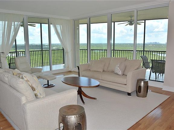 This single family home in the sky offers endless views of the Gulf, Bay & Mangroves with added privacy. The end unit offers windows on 3 sides with natural light pouring in, sunrise views from the back balcony and sunset views on the lanai. This is the largest floorpan in the A/B/C towers with a coveted 3rd bathroom and a second living area that can be used as a den or a family room. Home updates include wood floors, oversized tile and new bedroom carpet, granite counters and a custom wet island, stainless kitchen appliances, new frameless shower and fixtures in the master bath, updated guest baths, and 2 newer AC units. Membership to the Tarpon Cove Club is available (boat shuttle to Delnor Wiggins Beach, 6 har tru tennis courts, fitness center, clubhouse with dining, a tiki bar with bocce ball, fire pit and pool, boat slips available for lease/purchase, golf reciprocity off season). Cove Towers is North Naples' hidden gem, less than a mile to the Gulf, directly on Wiggins Pass with an optional Marina, built solid by WCI and flanked with several new construction towers starting at double the price. This is an excellent investment opportunity in Coastal Naples.