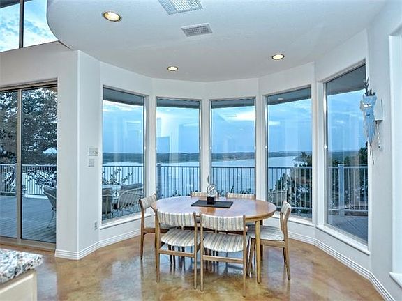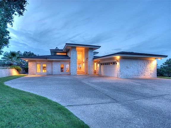 Wake up every morning to the stunning views in the Lake Travis Waterfront Custom home. Architecturally designed with cathedral ceilings, floor to ceiling windows and sliders, 24 ft granite kitchen island, unique stone fireplace, custom cabinetry, Stainless steel Sub-Zero, Two Cook tops, walk in pantry. Built-in House Vacuum. Master bedroom has a cedar steam sauna, double walk in closets, fireplace, plus more..only a golf cart drive to the nearby little airport to pick up your friends or family.