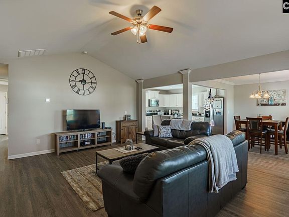 - RoomLivingRoomFeatures: Floors-Laminate, Ceiling Fan, Ceiling-Vaulted