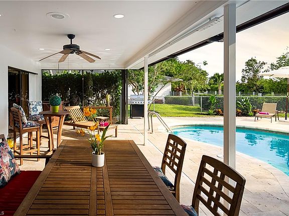 Well maintained and decorated pool home in beautiful Palm River Estates. New roof, new water heater, new a/c, new pool heater, new pool deck, new exterior paint. Mercato and Waterside Shops fine dining & shopping as well as the beaches are just a short drive away from this quiet Estate neighborhood. The beach, the Ritz Carlton, the weekly farmers market, the Naples Philharmonic, Mercato, Waterside Shops and plentiful Golf Courses are all right around the corner of this Florida style residence. Outdoor enthusiasts have the opportunity to use the home's bicycles to stroll around the neighborhood and nearby shopping and dining. This 4-bed / 2-bath sleeps 6 (1 King, 3 Queen). Flat-screen TV's in most bedrooms. Wireless high-speed internet. Pool and Lanai are facing desirably West.