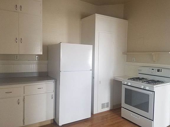 Come and see this great Downtown Santa Rosa upstairs apartment. The home comes with many windows for natural lighting. Wood floors in living room and kitchen. Two bedrooms with carpet and walk-in closets. Kitchen comes with gas stove, refrigerator and good cabinet space. High ceilings through-out the home give it that great downtown charm. One parking spot with storage space. Sorry, no pets or co-signers. 1 Year Lease (FR)