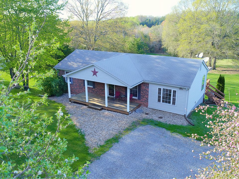 Main level living on a beautiful 5 acre lot in Campbell County! This home has so much to offer, including large windows and french doors that showcase this beautiful property and plenty of natural light! Master w/bath and private access to deck. Wonderful rec room with large built-in bar with mini-frig and wine cooler, gas logs and full bath on terrace level. Enjoy the outdoors on your large back deck that extends the length of the home with covered porch area! Great space for entertaining or just enjoying the park like views! Rear deck can be accessed from Den, Kitchen or Master Bedroom. This home has two 300-gallon water storage tanks and Culligan filtration system. The 5 acre lot includes a fire pit, fruit trees and stream. Home is conveniently located just a couple of minutes from Rt29. This one will not last!