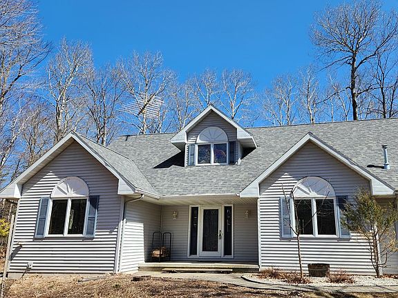 Wooded privacy at the very north end of the Peninsula. Deer Trail meets Hwy 42 at the famous winding portion of the highway. Only minutes from the Northport Ferry Dock and the waters of Lake Michigan. The house offers a wood-burning fireplace, a high-peaked ceiling in the great room, central air, four ceiling fans and ceramic tiles throughout. The bedrooms and loft are carpeted. The kitchen offers a dining area with a bay window. The main bedroom is ensuite, with a Jacuzzi tub. The garage is equipped with a hanging heater, and shelves line the walls. A firepit sits in the back yard, ready to use for s'mores or just gathering. The patio and front walk are decorative pavers, and raised garden beds line the yard.