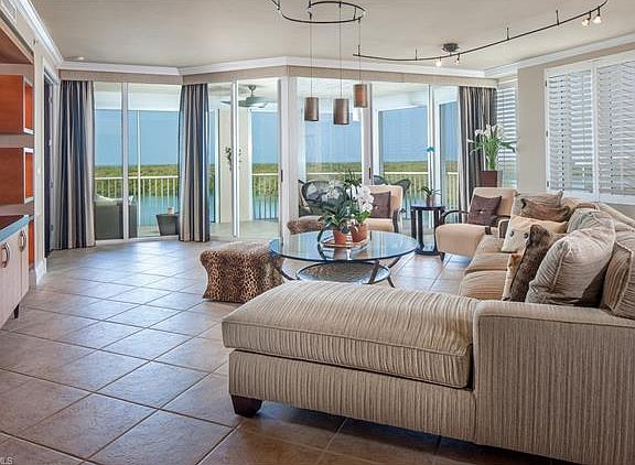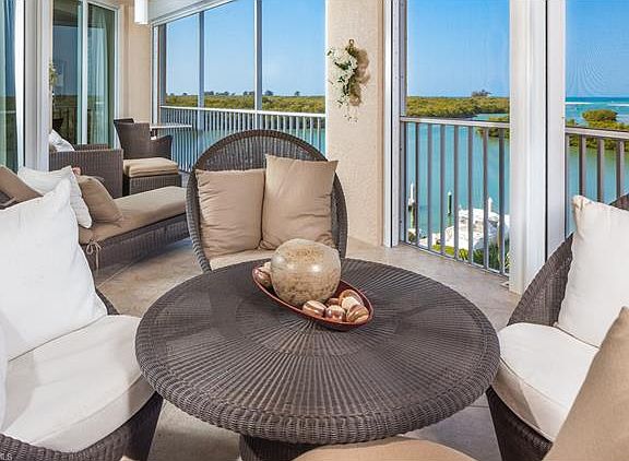 Beautiful renovated end unit - 3 + den 3.5 baths, 2862 SF positioned directly over Wiggins Pass to the Gulf of Mexico. A beautiful custom kitchen with views stretching to the white sand beaches lacing the Gulf waters. What makes a Chef happy? Gulf views - and being part of the action! Wonderful entertaining space - flowing from kitchen and custom dining room - to intimate living room that opens to the beautiful west facing lanai. Never miss a sunset from this premier front row seat! Spacious master suite has 2 spacious closets, sumptuous bathroom and opens to the sunset lanai area. Two private guest suits w/full bathrooms are on the east side of the property for complete privacy for owners and guests. Furniture package is available.