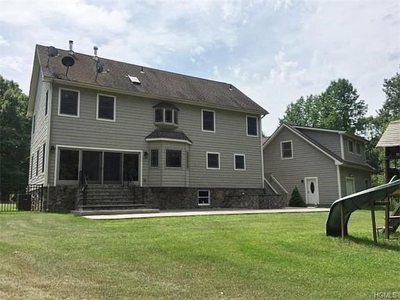 Executive home with all the bells &whistles! Built in 2005 this custom colonial features exposed stone, mahogony wood floors & double sided gas fireplace. Enjoy your master bedroom with double walk in closets, double vanity, Jacuzzi tub & tiled shower. Whole house is wired for surround sound & a security system. Other features include three zone central A/C & full walk out basement with 10' high finished ceilings. Detached 2 car garage with private office, seperate heat & a bathroom perfect for at home business. Outside highlights include iron clad fenced in yard & stamped concrete patio all in the Pine Bush S/D & minutes to Rte 17 Middletown.